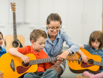 Introdução a ritmos e sons, com instrumentos e músicas que desenvolvem a coordenação e o amor pela música.
